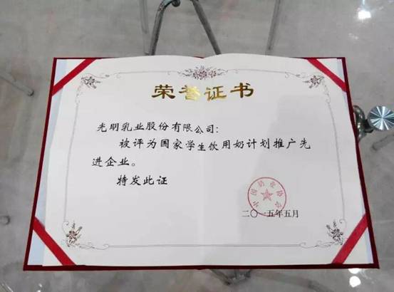 光明乳业荣获“优秀乳品加工企业”、“国家学生奶推广先进企业”称号