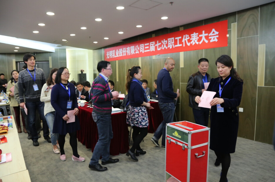 2016年3月4日下午,光明乳业三届七次职代会成功召开。本次职代会共有正式代表107名,实际到会代表97人,公司董事长张崇建、总裁朱航明和党委书记夏旭升以及其它党政班子成员均参加了会议。会议由公司工会主席贲敏主持。