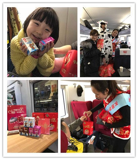 此外,为进一步增强消费者对光明乳业产品的认知度和体验度,首发仪式结束后,光明乳业的工作人员走上G14次列车,开展“乐在2017”学生奶关爱儿童爱心公益活动。