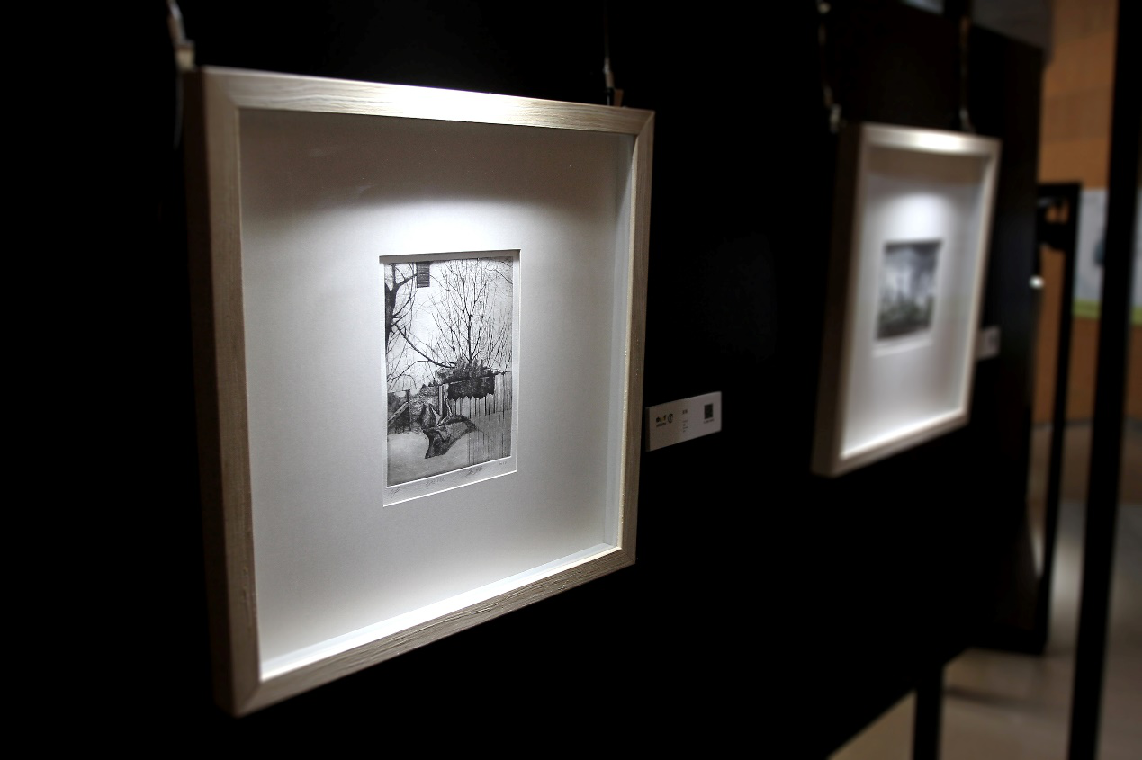 这五张《冬日》系列作品,主要运用铜版画蚀刻、干刻技术,