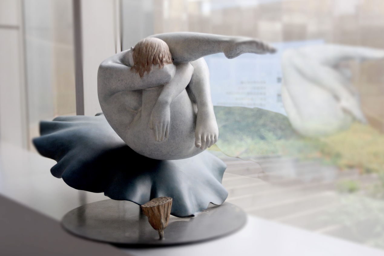 象征着人的本质,人的内在力量,蜷缩的姿态象征着内敛的性格,