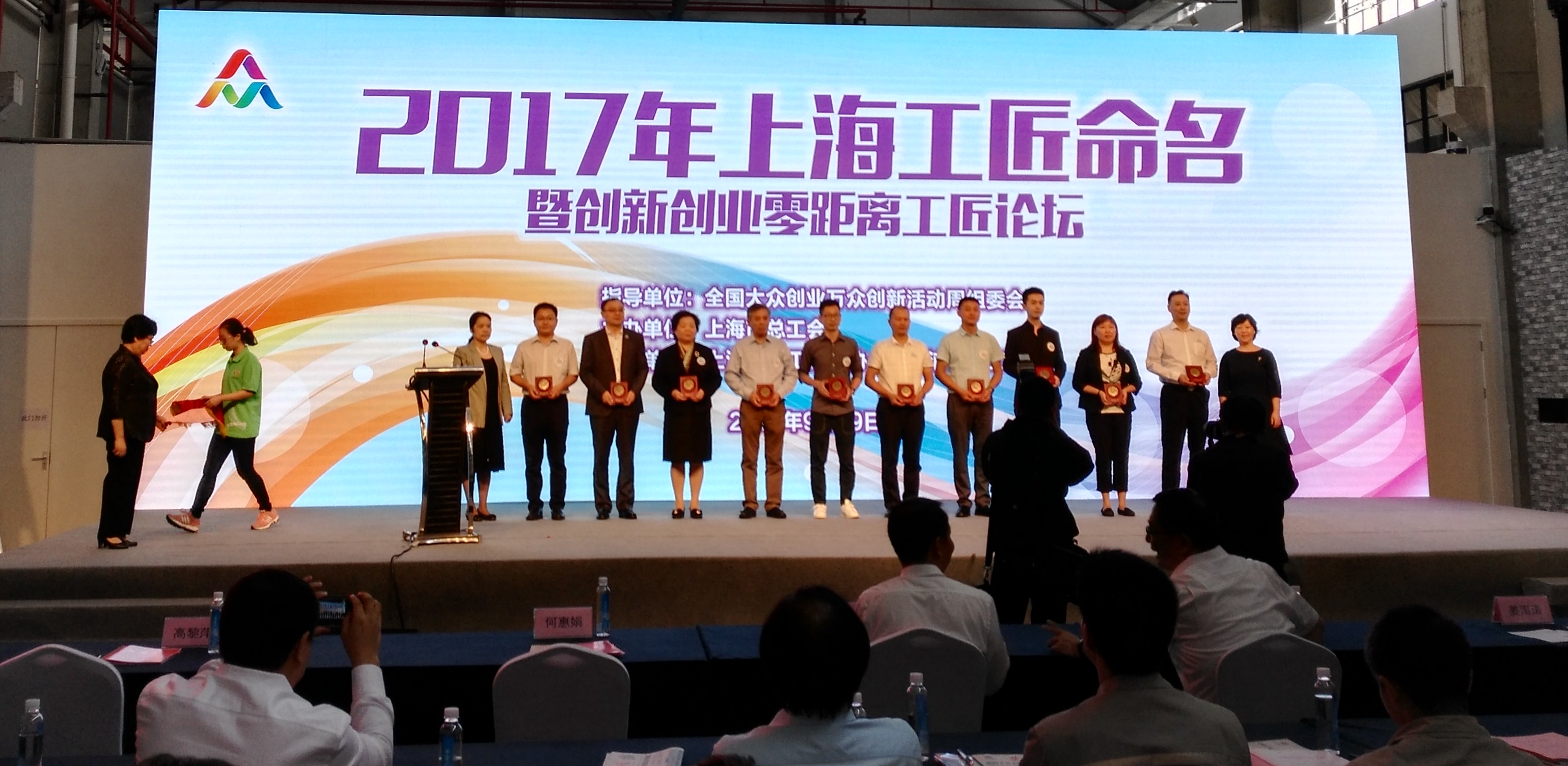 2017年9月19日上午,光明乳业研究院配方部部长苏米亚,在杨浦区长阳创谷参加2017年"上海工匠"命名暨"创新创业零距离"工匠论坛,荣获上海市总工会颁发的"上海工匠"称号,并上台领奖。