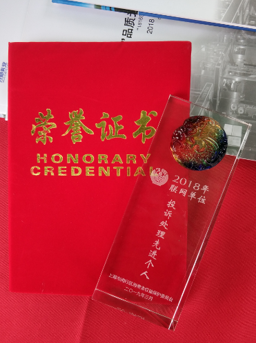 活动现场,闵行区消费者协会对2018年度“闵行区投诉联网先进单位和先进个人”进行了表彰,光明乳业新鲜营销中心员工在本次评选活动中荣膺投诉处理先进个人称号。