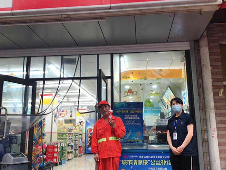 公益补给站的冷饮冰柜,里面装满了光明冷饮和其他饮料,供环卫工人、外卖小哥、快递员、执法队员等户外工作者免费取用,让他们在坚守工作岗位的时候,能够享受片刻清凉。活动启动前夕,光明乳业旗下益民一厂的配送人员从凌晨4点开始配送,经过数小时的快马加鞭,终于把光明冷饮在南京全市所有补给站配送到位。