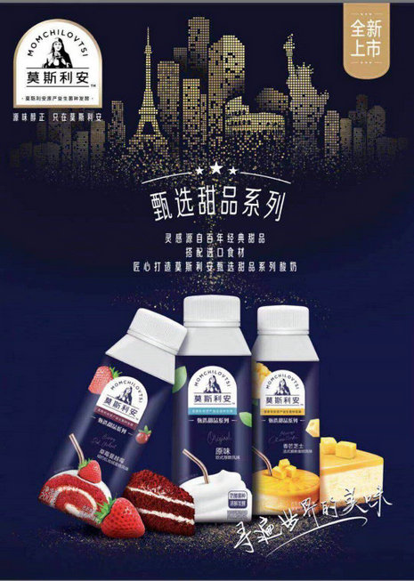 作为常温酸奶先行者,莫斯利安不断研发产品的新功能和新口味,以创新之势颠覆传统酸奶市场。2019年,莫斯利安先后推出了低脂减糖的66kcal莫斯利安新品、莫斯利安沙拉酸奶系列和甄选果粒系列,更创新推出莫斯利安酸奶冰淇淋,酸奶与冰淇淋的完美结合掀起一股跨界冷饮新潮流,一经上市便获得了消费者的喜爱。2019年年底,莫斯利安全球首发星厨甜品系列,让“可以喝的甜品”满足更多消费者的口感体验。纽约红丝绒蛋糕、法式香芒芝士慕斯、欧式厚酪,三款极致美味让吃甜品不再成为“甜蜜的负担”,同时,在产品包装上莫斯利安更加注重功能性升级,只为给消费者带来更轻便的饮用体验,全新即饮型旋盖设计包装随时随地尽享美味体验。以全新包装和创新风味不断带给消费者惊喜,莫斯利安在经典与新潮中不断焕发新的活力,引领常温酸奶品类的消费升级,也为广大消费者提供了更多饮用场景。