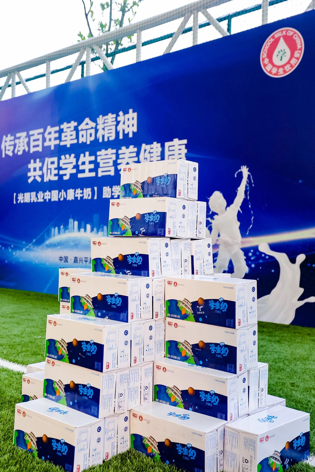 2021年5月26日,国家“学生饮用奶计划”2021年系列主题首场活动,在浙江省平湖市正式拉开帷幕。此次活动由中国奶业协会主办,主题为“传承百年革命精神 共促学生营养健康”,旨在走进学生饮用奶推广一线,推动“学生饮用奶计划”的宣传推广和落实。光明乳业作为首批学生饮用奶定点生产企业之一,现场向平湖市林埭小学捐赠学生饮用奶1300箱。