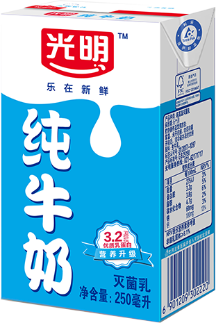 光明纯牛奶,采用优质的生鲜奶源,经国际先进超高温瞬间灭菌工艺,3.2g/100ml优质乳蛋白,营养更升级!