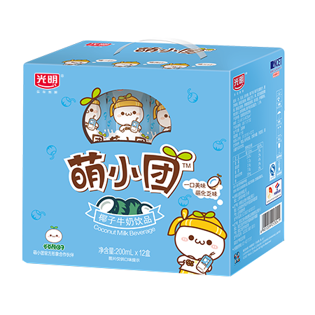 萌小团椰子牛奶饮品,好喝美味,原料使用来自印度尼西亚爪哇岛的天然椰子及光明优质奶源。