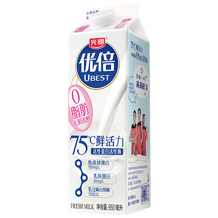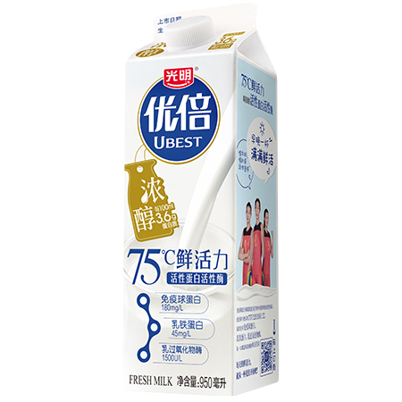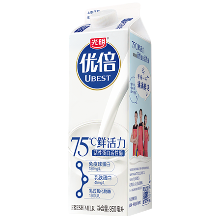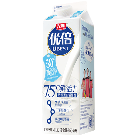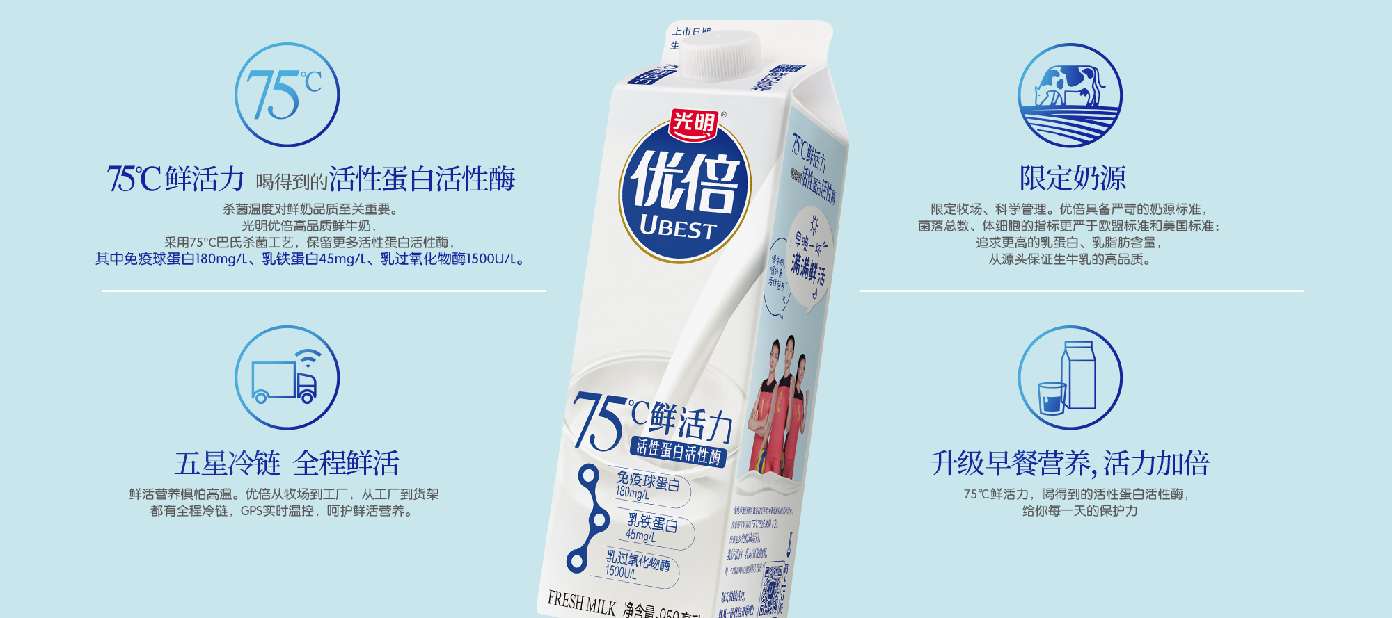 2017年10月,优倍正式推出采用75℃巴氏杀菌工艺生产的鲜奶,以「更高营养指标」、「更高标准奶源」和「更高冷链要求」,引领中国鲜奶进入75℃时代。