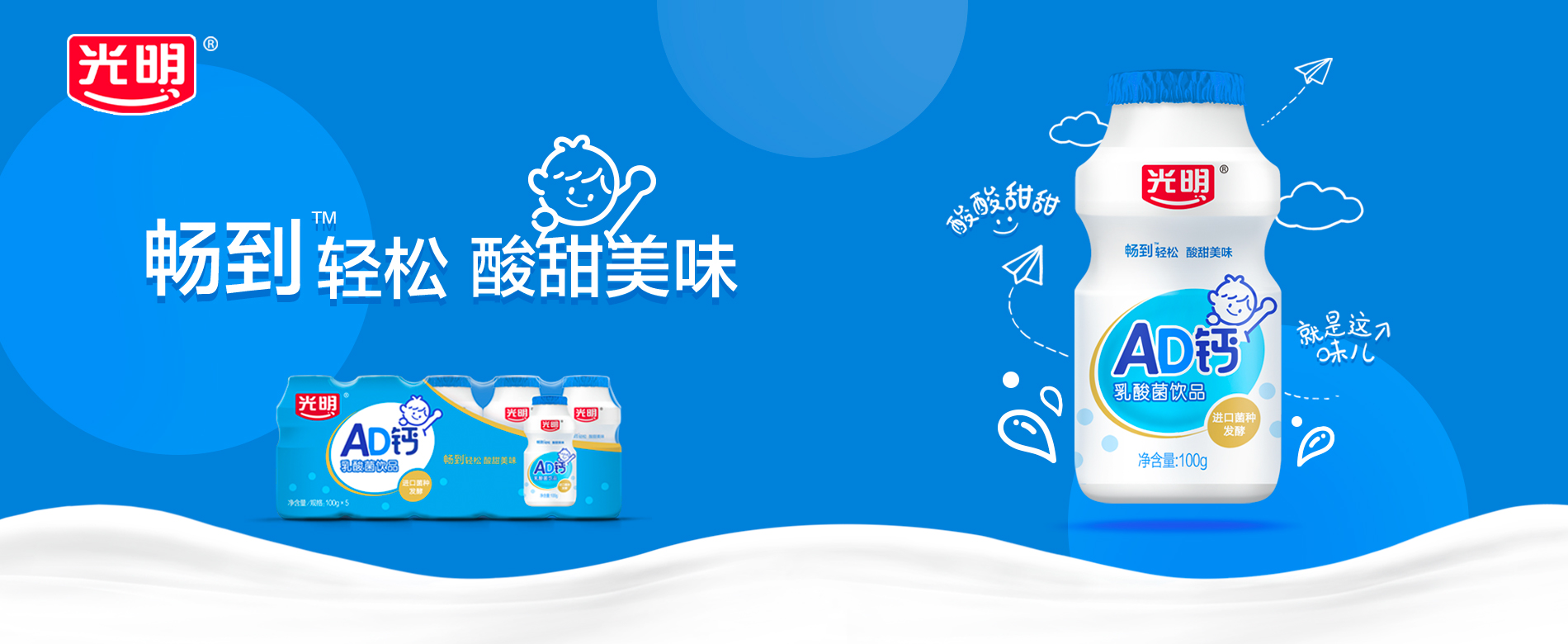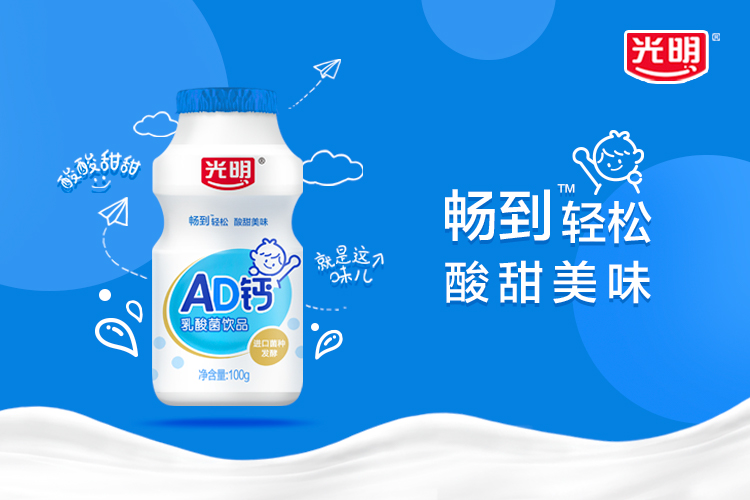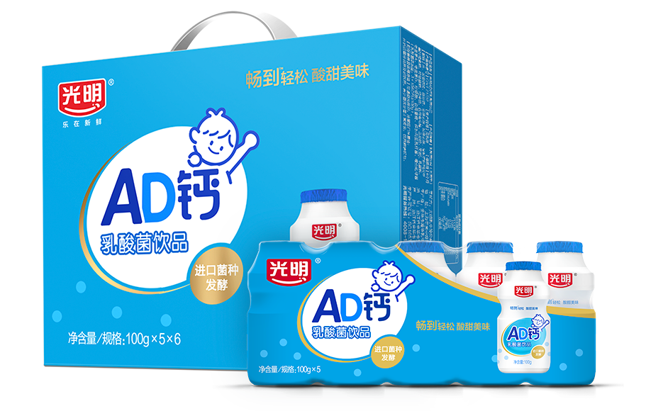 光明AD钙乳酸菌饮品,选用光明优质荷斯坦牛乳,采用进口乳酸菌发酵,酸甜口感—饮难忘,特别添加维生素A、维生素D。口感与营养兼顾的好滋味!