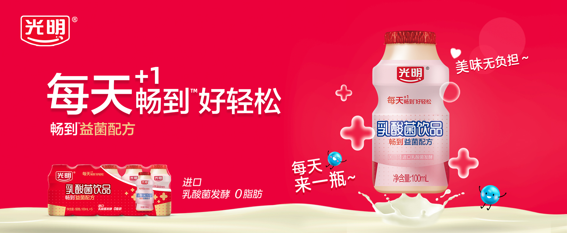 光明乳酸菌饮品,采用光明优质奶源,5种乳酸菌发酵,0脂肪。口感清爽酸甜,每天来一瓶,美味无负担!